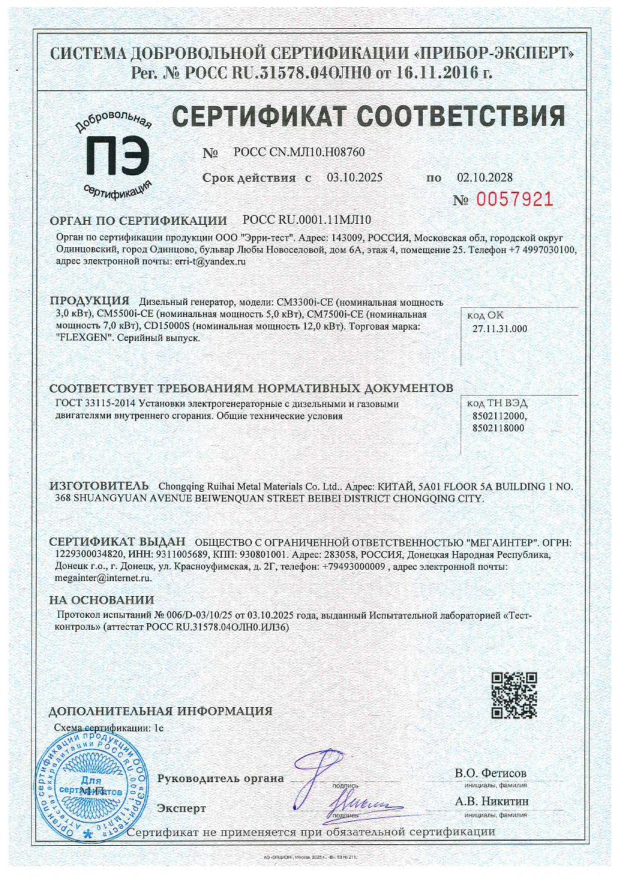 Дизельный генератор FLEXGEN CD15000S - однофазная электростанция номинальной мощностью 12 кВт с дизельным двигателем воздушного охлаждения. Отлично подходит для мобильного электроснабжения загородных домов, вахтовых поселков, торговых точек, в военных и пожарных частях; в медицинских учреждениях; при строительстве отдалённых объектов и проведении аварийно-спасательных работ.